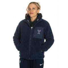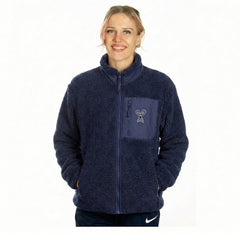 Embroidered Little Owl by Klaus Haapaniemi Sherpa fleece jacket, Navy