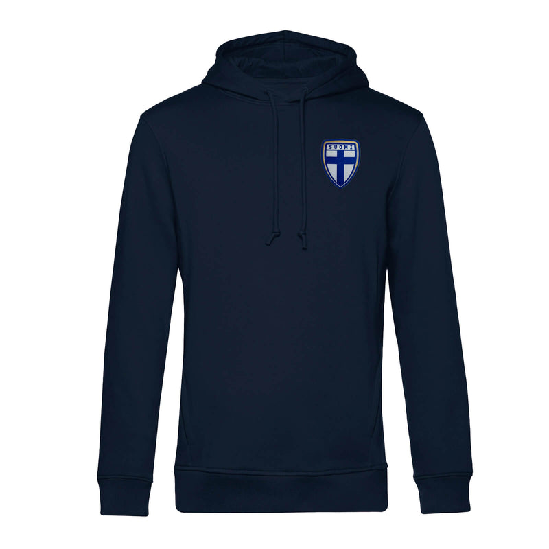 Pehmeän hupparin rintaan sijoitettu pelipaidoistakin tuttu Vaakuna viimeistelee hillityn ja klassisen ilmeen.